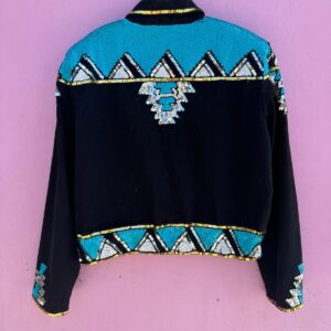 FUNKY WESTERN SEQUIN GEOMETRIC DESIGN CROPPED ZIP-UP JACKET