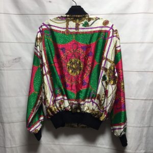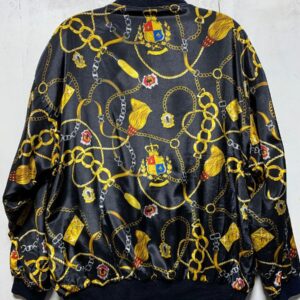 1980S CHAIN TASSEL PRINT SILKY BOMBER JACKET WITH SHOULDER PADS