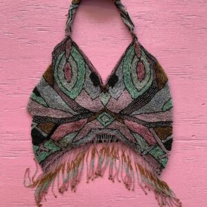 AMAZING FULLY BEADED BUTTERFLY SHAPE HALTER TOP W/ TASSEL TRIM VELCRO CLOSUR