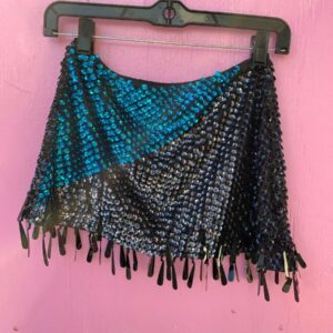 LITTLE ALLOVER SEQUIN COLOR BLOCK MINI SKIRT HANGING TASSELS