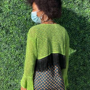 CUSTOMIZED VINTAGE LIME GREEN COTTON CROCHET BELL SLEEVE OPEN CARDIGAN TOP TASSEL TRIM BOTTOM