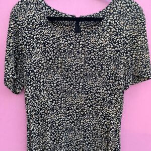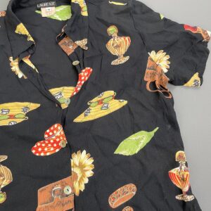 CUTE!! 1990S SLINKY FASHION ACCESSORY PRINT SLEEVE BUTTON DOWN RAYON BLOUSE