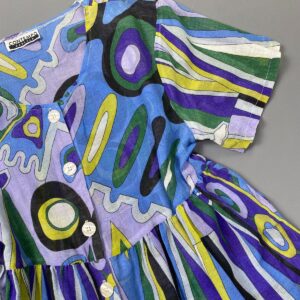 SO ADORABLE! 1980S-90S SHEER FUNKY PRINT COTTON PUCCI STYLE PRINT SS BABYDOLL MINI DRESS BUTTON FRONT