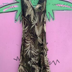 *AS-IS* 1990S | Y2K SHEER SILKY PALM PRINT SLEEVELESS MAXI DRESS