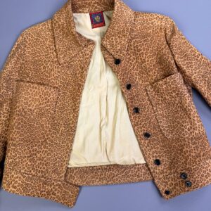 *AS-IS* SWEET! 1980S-90S MINI LEOPARD PRINT BRUSHED SUEDE LEATHER JACKET