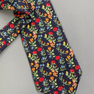 GORGEOUS CLASSIC FLORAL & TEDDY BEAR PRINT WIDE CUT SILK TIE