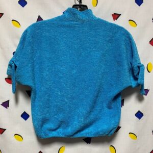 RETRO 1970S TERRY CLOTH CROPPED TOP CINCHED BOTTOM TIED SLEEVES