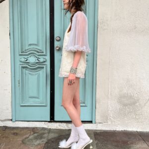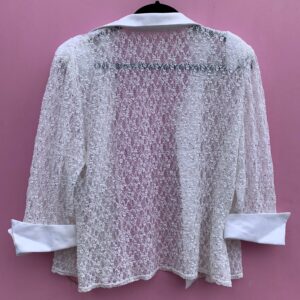 1990S GLITTERY GAUZE STRETCH LACE OPEN BLOUSE WITH SATIN TRIM / COLLAR