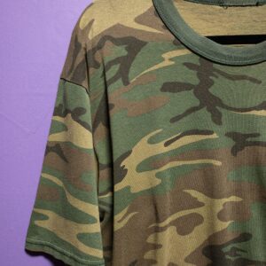 *AS-IS* PAPERTHIN GREEN ARMY CAMOUFLAGE RIBBED COLLAR CROPPED T SHIRT