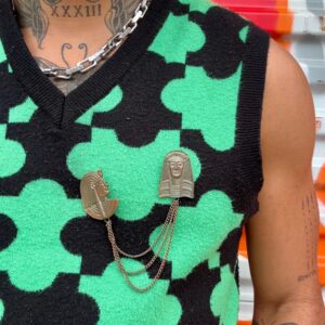 EGYPTIAN PHAROE METAL COLLAR PINS W/ CHAINS