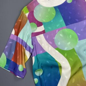 NWT IRIDESCENT PASTEL ABSTRACT GEOMETRIC & HAND PRINT SHORT SLEEVE SHIFT DRESS