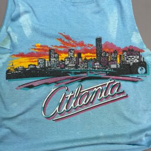 *AS IS* AMAZING! 1980S ATLANTA SKYLINE GRAPHIC 84 RAW CUT CROP SLEEVES TANK TOP