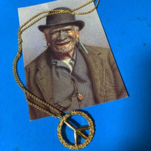 GAUDY GOLD DEADSTOCK PEACE SIGN CHARM NECKLACE LONG GOLD PLATED CHAIN