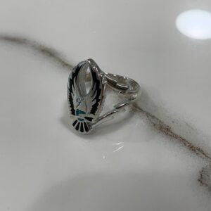 HARLEY EAGLE WINGS RING TURQUOISE & JET BLACK INLAY LIGHTNING BOLT SIDES