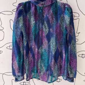KILLER 1980S SHEER COWL SCARF NECK PASTEL CHEVRON PRINTED BLOUSE