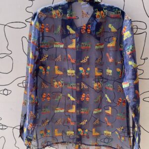 AMAZING! SHEER COLORFUL SHOE & PLATFORM DESIGN WOVEN BLOUSE
