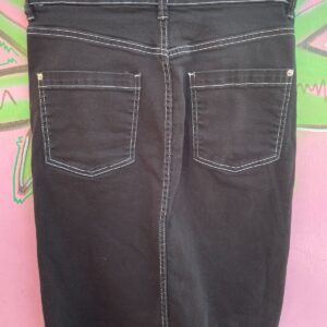 BLACK STRETCH PENCIL SKIRT, CONTRAST STITCHING