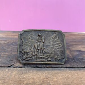 VINTAGE WESTERN BELT BUCKLE PIONEERS WAGON TRAIN TRAIL COWBOY HORSE