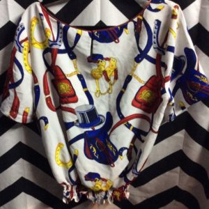 1980’S EQUESTRIAN PRINT DESIGN W/ ELASTIC HEM BLOUSE