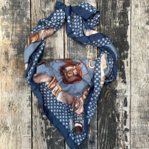 LARGE EQUESTRIAN PRINTED SILK SCARF WITH CHECKERED BORDER