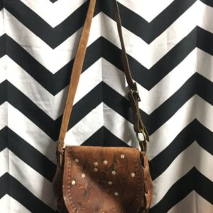 70’S PURSE LEATHER W/ FLOWER DESIGN & BUCKLE STRAP