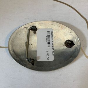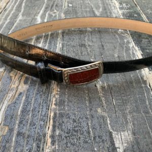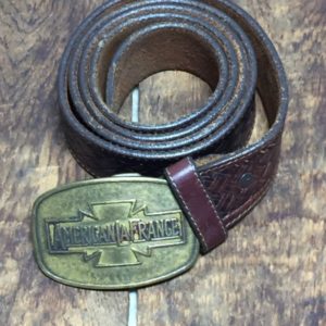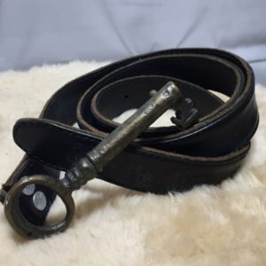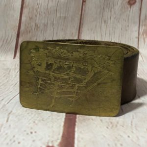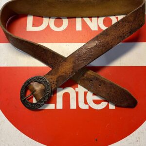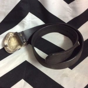 WIDE LEATHER BELT W/LARGE SOLID BRASS OVAL BUCKLE