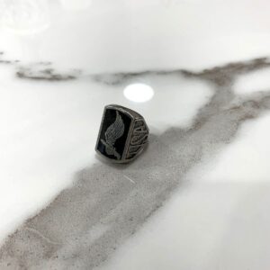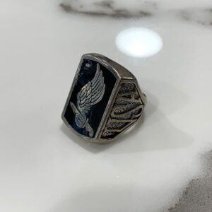 USA FLYING SWORD MILITARY INSIGNIA JET BLACK INLAY BIKER RING