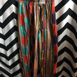ELASTIC WAIST COTTON PANTS FITTED AT ANKLES W/ETHNIC IKAT STRIPPED PATTERN