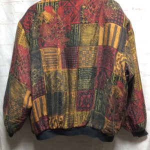 SILK FUNKY ETHNIC PATTERNED SQUARE SHAPES IN PATCHWORK DESIGN BOMBER JACKET 1990’S