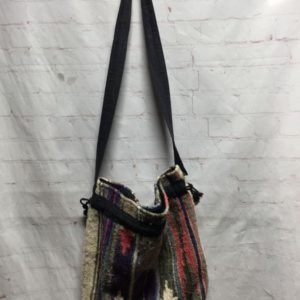 VERTICAL STRIPED WOOL TOTE W/ SHOULDER STRAP & HANDMADE IN ECUADOR