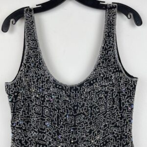 AS-IS AMAZING FULLY IRIDESCENT BEADED ABSTRACT DESIGN SLEEVELESS MINI DRESS SEQUIN FLOWER ACCENTS