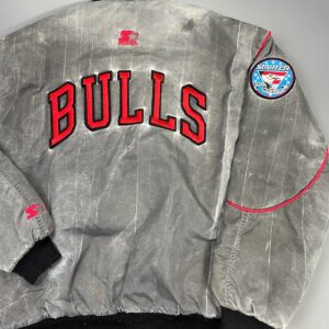 EPIC ACIDWASH NBA CHICAGO BULLS NYLON BUTTON UP STARTER JACKET