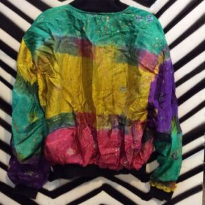 FUN! 1990S LIGHTWEIGHT ALLOVER JEWEL PRINT SILKY BOMBER JACKET