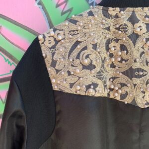 COOL! SILKY BOMBER JACKET LACE & PEARL APPLIQUE PANELS