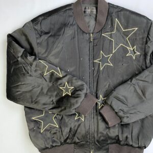 1980S-90S 100% SILK EMBROIDERED STARS & RHINESTONE ZIP-UP BOMBER JACKET, RIBBED COLLAR & CUFFS