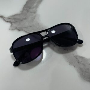 RETRO SOLID BLACK DOUBEL BRIDGE FRAME, DARK LENSE TRAPEZOID CUTOUT