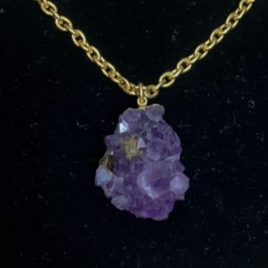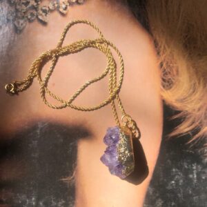 GOLD-DIPPED AMETHYST GEODE NECKLACE – VINTAGE 18K GOLD PLATED ROPE CHAIN