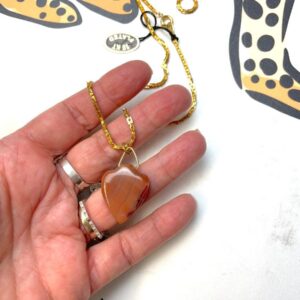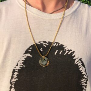 CARVED STONE PENDANT NECKLACE 18K GOLD PLATED *DEADSTOCK