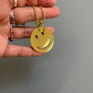 MIRRORED 18K GOLD PLATED STAMPED BRASS OVERSIZED SMILEY FACE PENDANT NECKLACE SOLID BRASS BALL-CHAIN