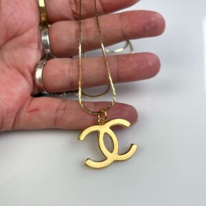 18K GOLD PLATED CHANEL LOGO NECKLACE DEADSTOCK 18K GOLD PLATED SNAKE CHAIN