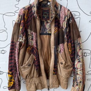 AS IS AMAZING 1980S COTTON & LEATHER PATCHWORK BOMBER JACKET