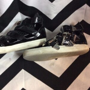 SHOES – PATENT LEATHER – FOUR BUCKLED STRAPS – HIGH TOP – MESH TOE