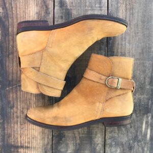 ROUND TOE SLIP ON LEATHER BOOTS WITH WRAP AROUND BOOT STRAPS