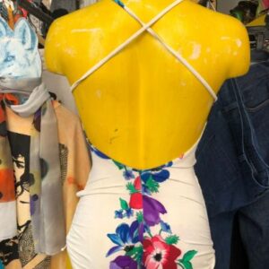 BATHING SUIT ONE PIECE TUBE TOP HAWAIIAN FLOWER DOWN MIDDLE SEAM UNDER BREAST