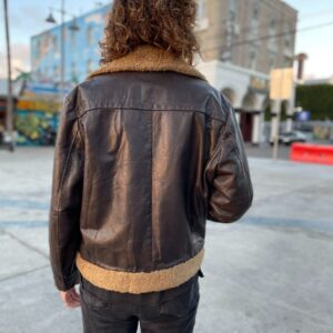 AS-IS RAD 1970S SHERPA LINED GENUINE LEATHER FLIGHT JACKET BRASS ZIPPER PULL