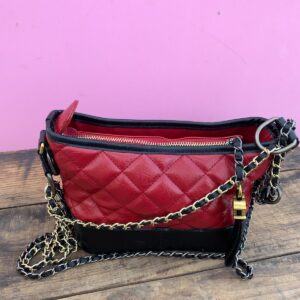 SUPER CUTE! 1990S 2-TONED QUILTED LEATHER PURSE DOUBLE WOVEN CHAIN STRAPS