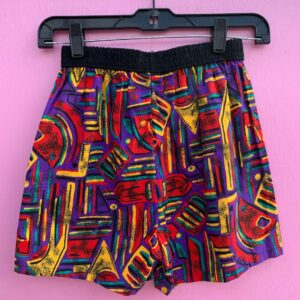 SHORTS W/ 1990S ABSTRACT GEOMETRIC PRINT CONTRAST WAISTBAND
