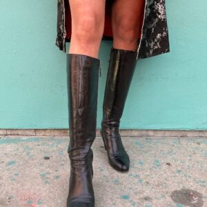 AS IS KNEE HIGH SHINY ITALIAN LEATHER BOOTS FAUX SNAKESKIN EMBOSSED DETAILS