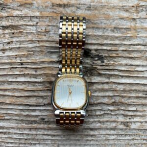 VINTAGE ROLEX GENEVE WOMENS GOLD AND SILVER TONE RECTANGULAR ANALOG STAINLESS STEEL WATCH