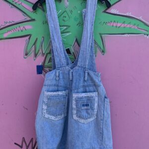 CUTE! *AS-IS* 1980S-90S LIGHT MINERAL WASH DENIM ROMPER FUNKY CONTRAST PRINT CUFF & DETAILS